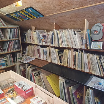Fondateur de la librairie La Vouivre à Saignelégier, aujourd’hui libraire retraité, j’ai le temps de sortir des cartons les livres accumulés au long des années. Comme mon intérêt pour la bande dessinée existe depuis toujours, je propose aujourd’hui à la vente des bandes dessinées soldées, d’occasion ou rares, ainsi que divers tirés à part publicitaires, affichettes ou objets autour de la bande dessinée.